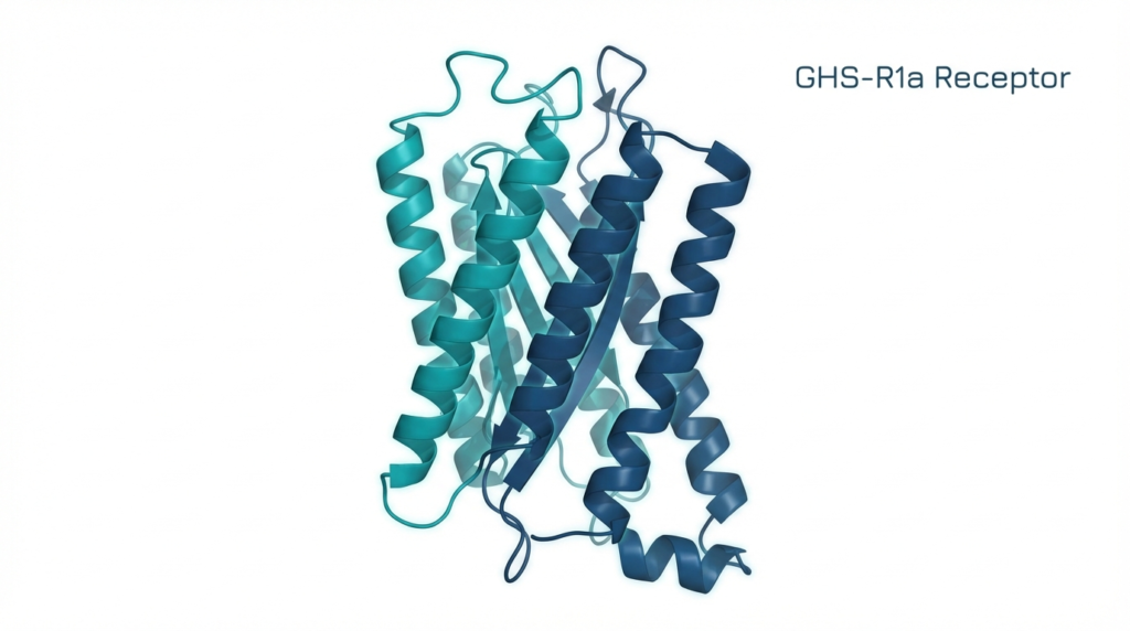 The GHS-R1a receptor was cloned and characterized by Howard et al. in 1996, establishing it as the endogenous binding site for ghrelin and the primary molecular target of the entire GHRP compound class. [3] Activation of GHS-R1a triggers intracellular calcium mobilization via Gq/11-mediated phospholipase C signaling, leading to exocytosis of GH-containing secretory granules from pituitary somatotroph cells.
