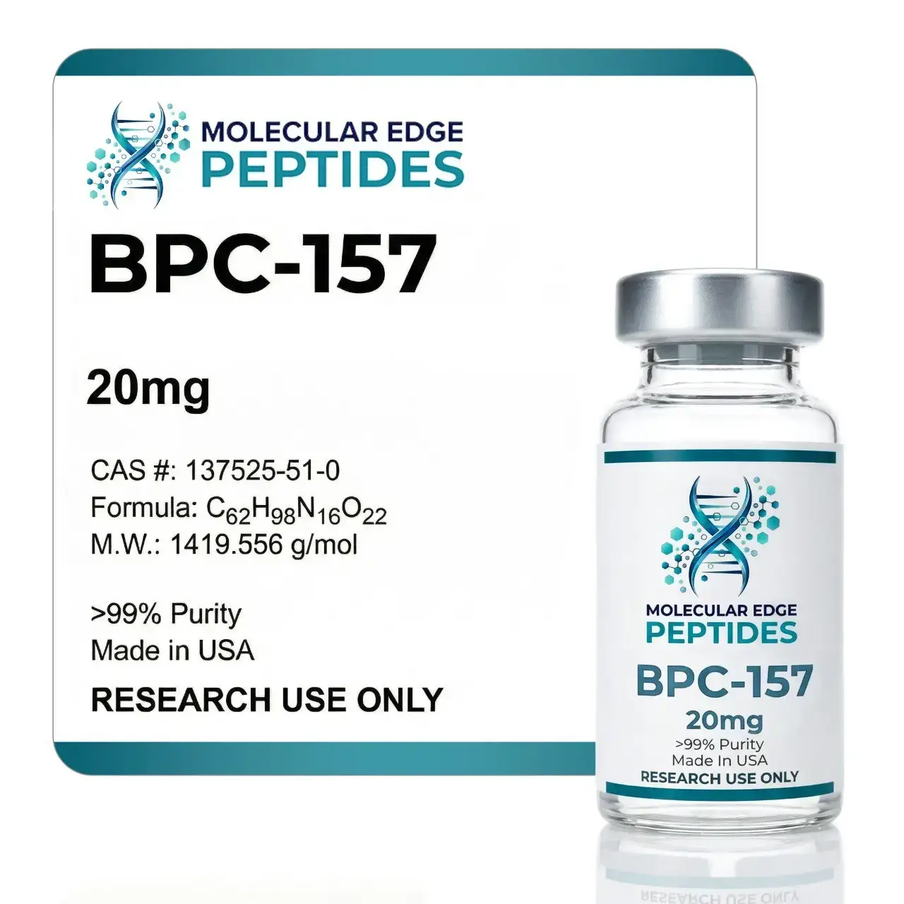BPC-157 Peptide exhibits minimal side effects, moderate oral and excellent subcutaneous bioavailability in mice. Per kg dosage in mice does not scale to humans. BPC-157 Peptide for sale at Molecular Edge Peptides is limited to educational and scientific research only, not for human consumption. Researchers seeking to Buy BPC-157 Peptide for Research should do so only within licensed laboratory settings.