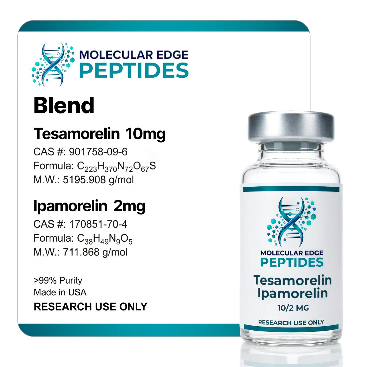 Ipamorelin and Tesamorelin exhibits minimal side effects, low oral and excellent subcutaneous bioavailability in mice. Per kg dosage in mice does not scale to humans. Ipamorelin and Tesamorelin are for sale at Molecular Edge Peptides is limited to educational and scientific research only, not for human consumption. Only buy Ipamorelin and Tesamorelin if you are a licensed researcher.